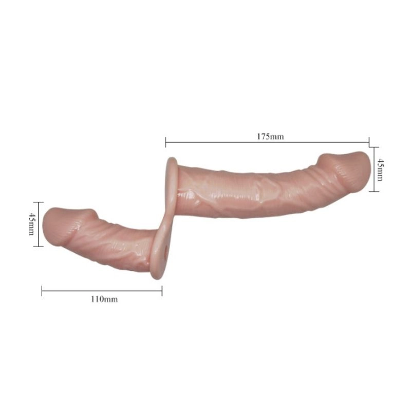 Pene interno: 11 cm de largo x 4.5 cm de grosor, diseñado para estimulación simultánea de quien lo lleva.