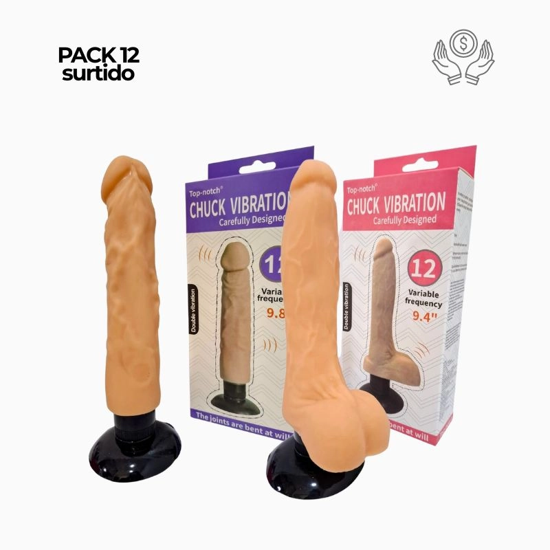 Este pack surtido de 12 dildos realistas con vibración está diseñado para ofrecer variedad, calidad y excelente rotación en tu negocio. Cada unidad cuenta con un acabado realista, textura detallada y ventosa de alto agarre, ideal para uso manos libres.