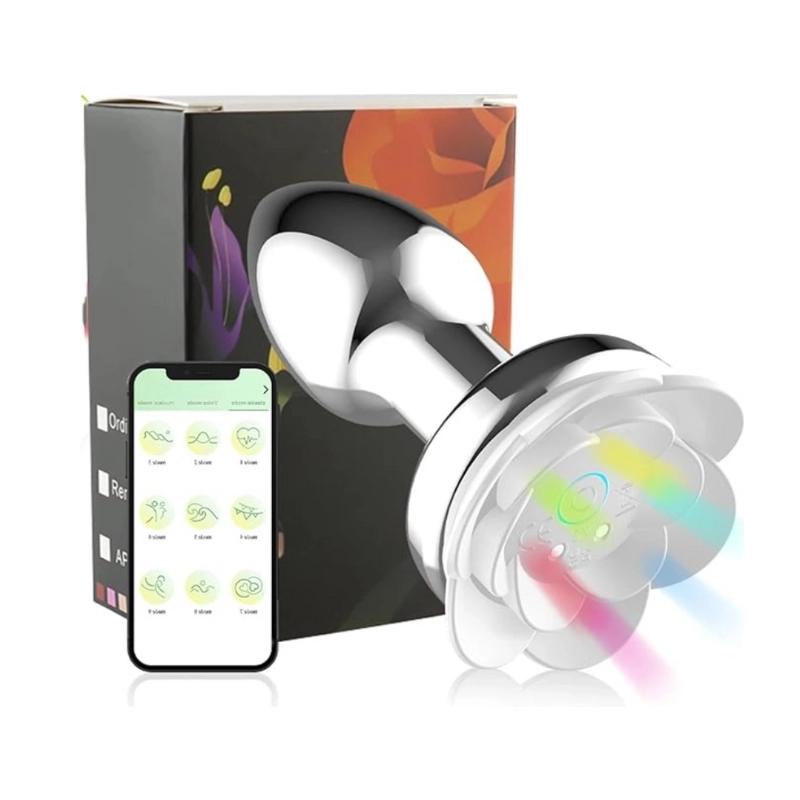 El Plug Anal Flower es perfecto para quienes buscan una experiencia íntima única, combinando 9 modos de vibración con 9 luces LED de colores para un espectáculo visual y sensorial incomparable.